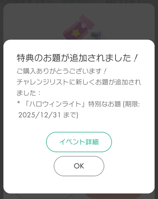 金の苗:白の(ハロウィンライト)このアイテムでよろしいですか?と確認画面が表示されたので「OK」ボタンをタップした。