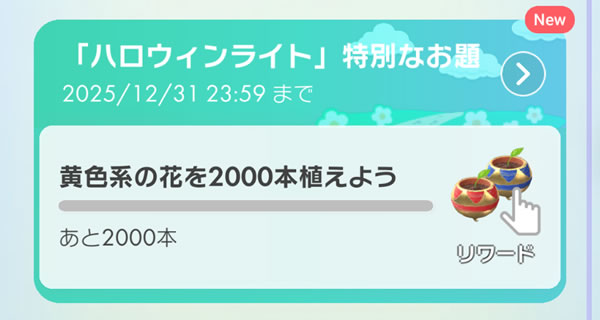 お題は「黄色系の花を2,000本植えよう」なので問題なくクリアできそうなので購入ボタンを押した。