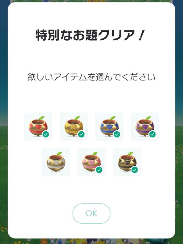 早速黄色系の花を2,000本植えたらクリア画面が表示された。ゲットしてなかったのは「白のハロウィンライト」だったよな…と思い確認したかったが、確認することは出来なかった。この画面が表示されたら他の画面が選べなかった。しかし持っているデコの苗にはチェックが付いていたので「これは白で間違えないな」と白の苗を選んだ。