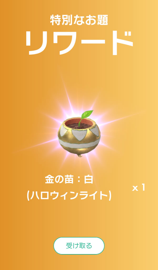 すると無事「白の(ハロウィンライト)」の苗を受け取ることが出来た。